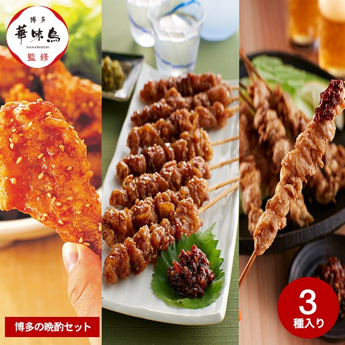 博多の晩酌セット(博多名物とり皮くるくる串、華からっと)(HKT-24KG) 送料無料 メーカー直送 冷凍便 / はなみどり とり皮 たれ 塩 からあげ 唐揚げ 家飲み おつまみ ギフト 食品 名店 お取り寄せグルメ 高級 九州 惣菜
