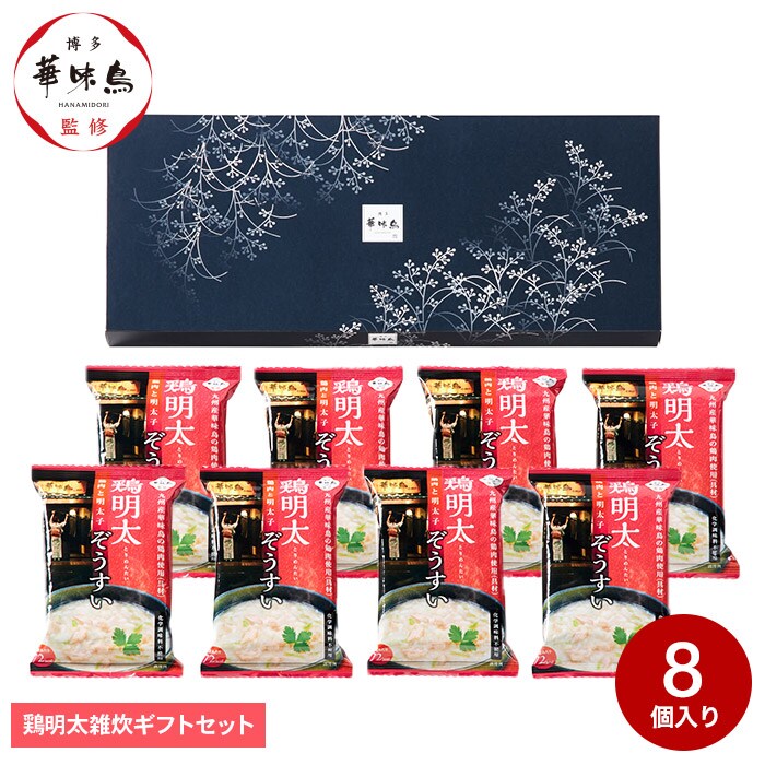 華味鳥 フリーズドライ鶏明太雑炊ギフトセット(MHZ-8) / はなみどり 内祝い お返し ギフト グルメ 食品 名店 高級 九州 写真入り メッセージカード 可