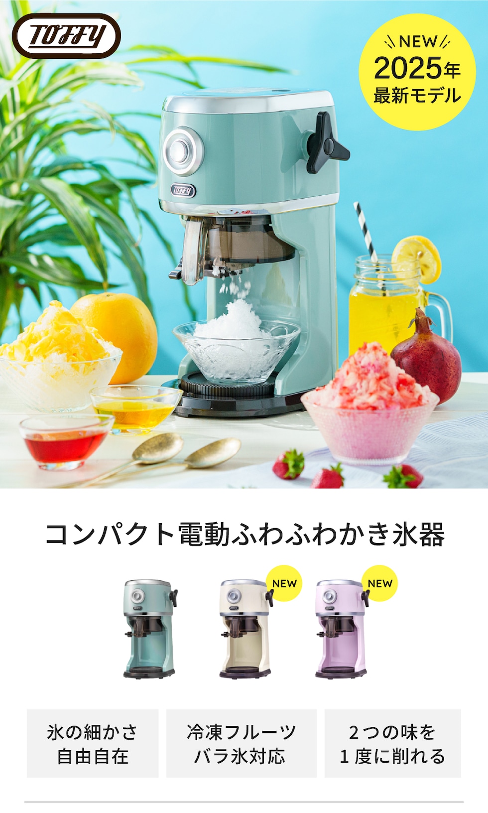 (土・日発送可)送料無料 【2025年モデル】Toffy トフィー 電動 かき氷器 コンパクト電動ふわふわかき氷器 K-IS14 / かき氷 ふわふわかき氷機 製氷カップ付き バラ氷対応 冷凍フルーツ ハーフ氷 ミックス氷 ふわふわ とろ雪 JGS / ペールアクア