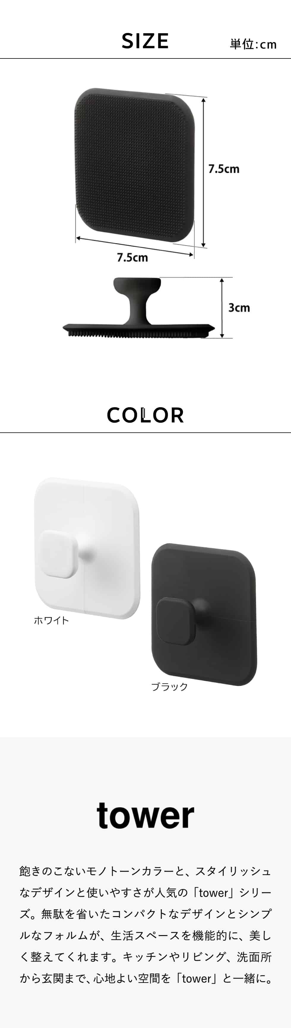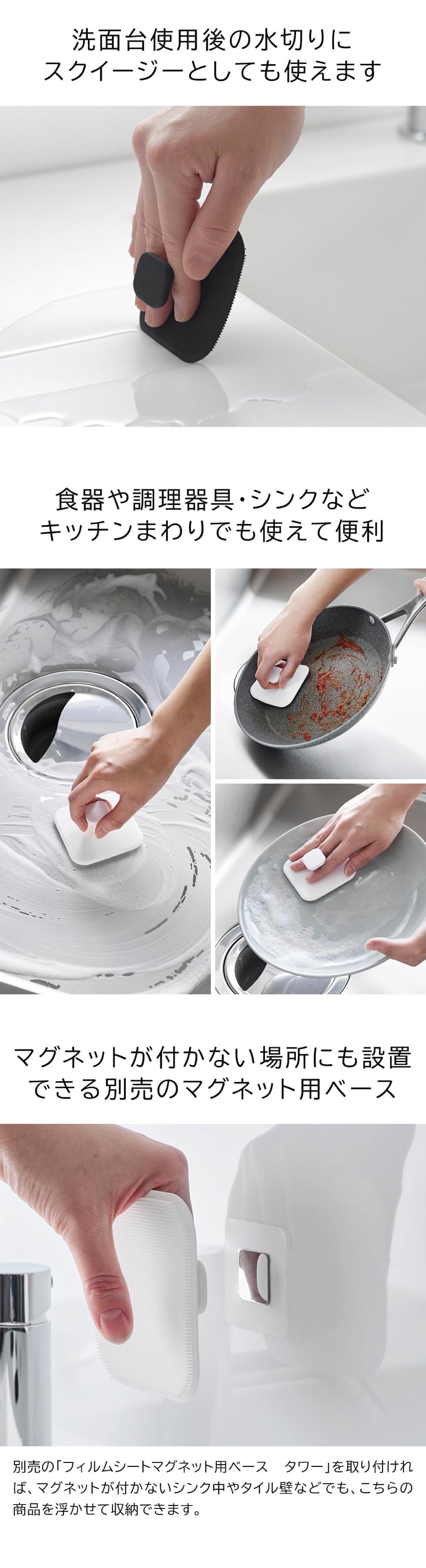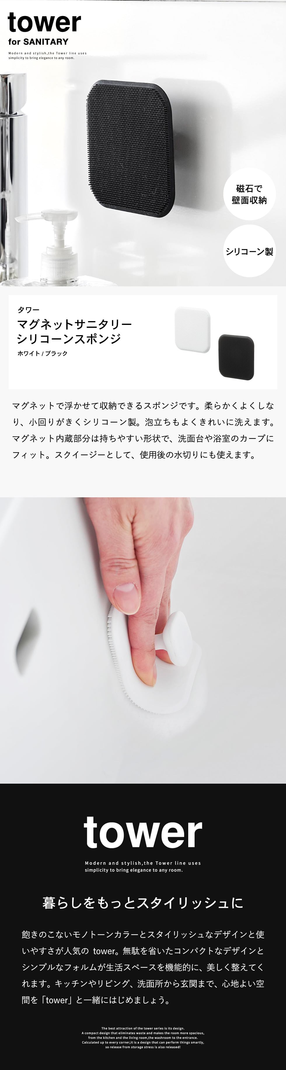山崎実業 公式 tower マグネットサニタリーシリコーンスポンジ タワー 1842 1843 / シリコン スポンジ 洗面台 お風呂 水切り 食器 調理器具 シンク周り 浮かせる収納 yamazaki タワーシリーズ / ホワイト
