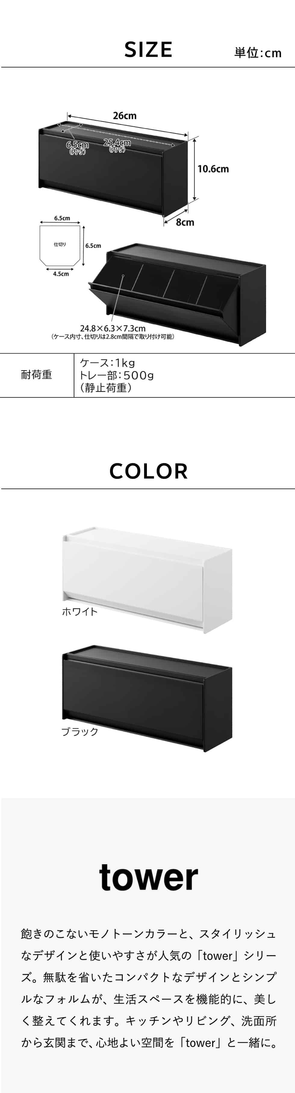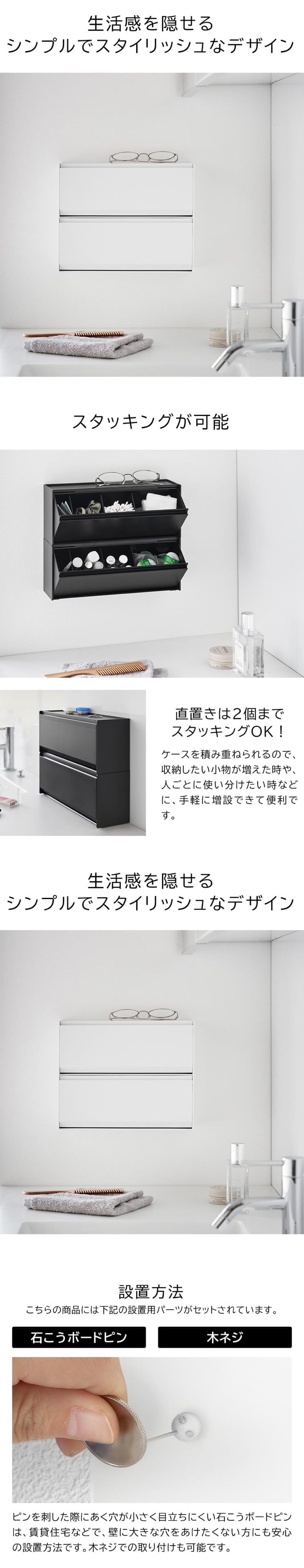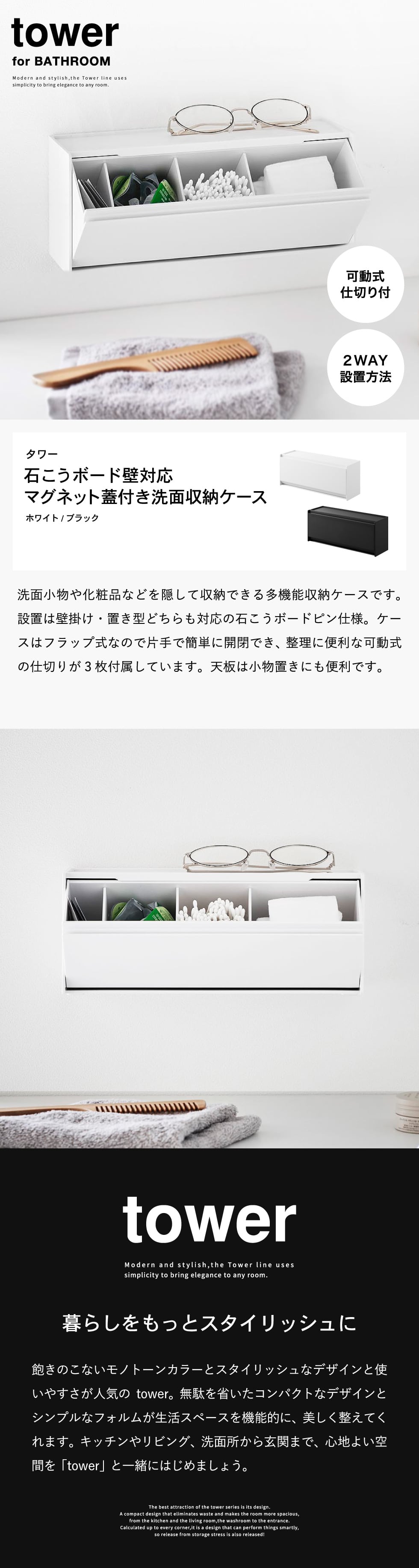 山崎実業 tower ウォール洗面収納ケース タワー 石こうボード壁対応 公式 1355 1356 送料無料 / コスメ収納 洗面台 洗面所 整理 整頓 コットン 綿棒 コンタクト 浮かせる収納 タワーシリーズ yamazaki / ホワイト