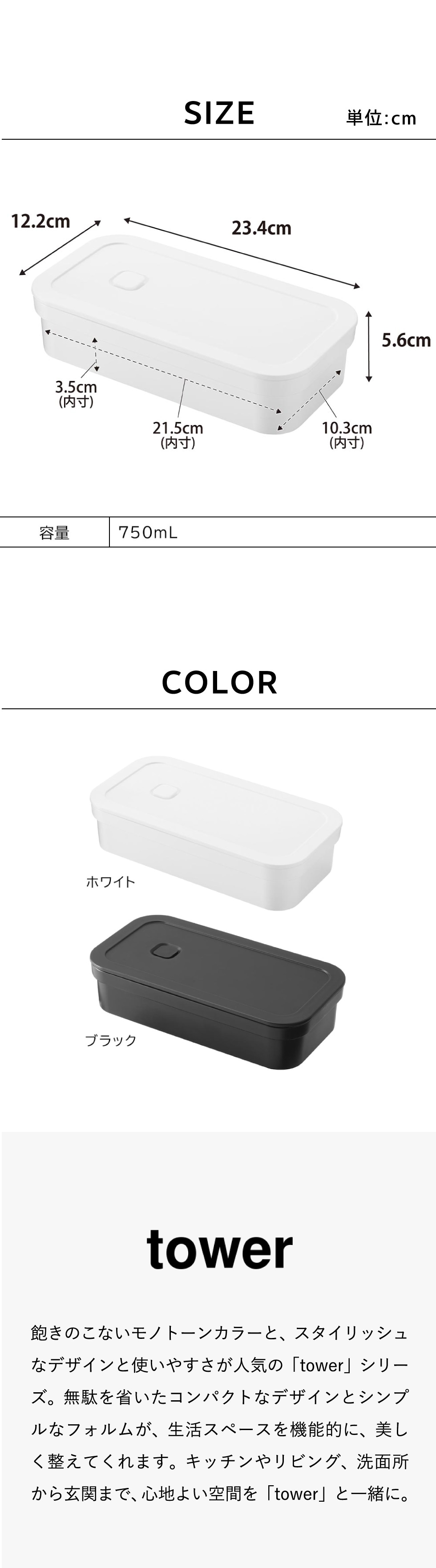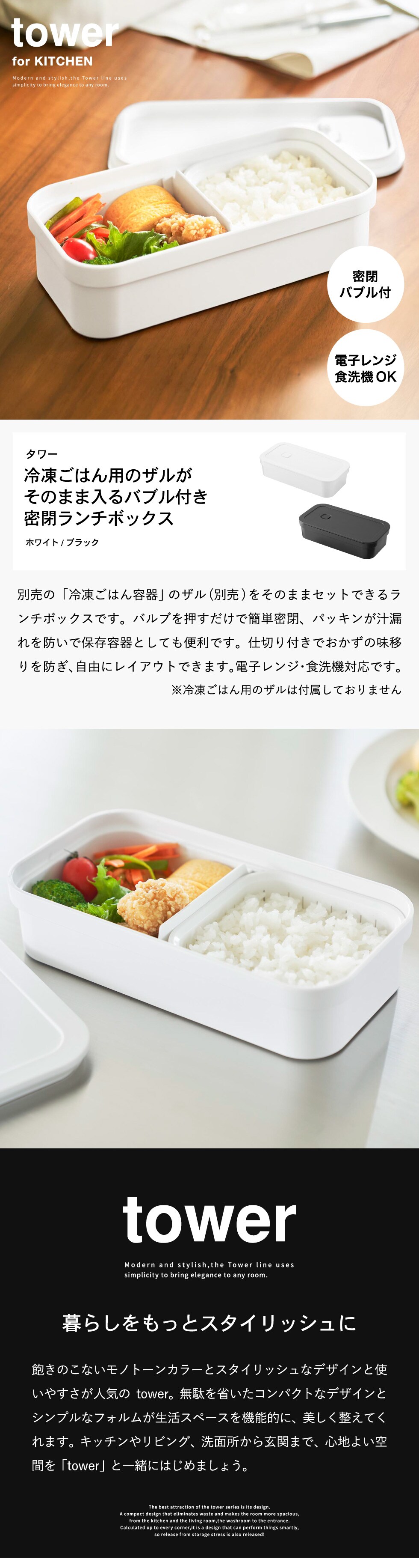 山崎実業 tower 冷凍ごはん用のザルがそのまま入るバルブ付き密閉ランチボックス タワー 公式 1363 1364 / 750mL 弁当箱 保存容器 電子レンジ 食洗機 対応 密閉 yamazaki タワーシリーズ JGS / ホワイト