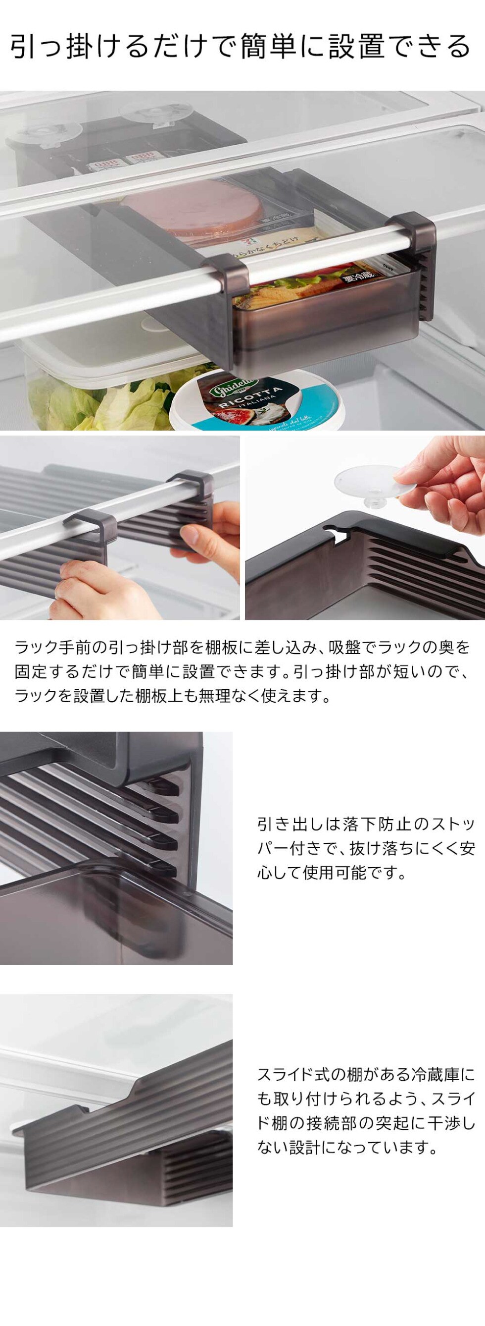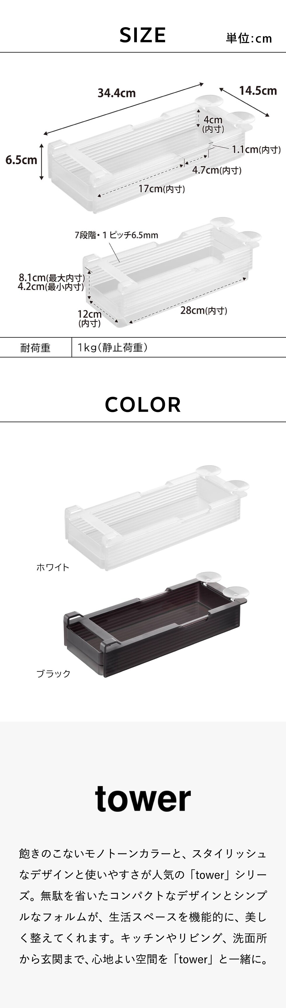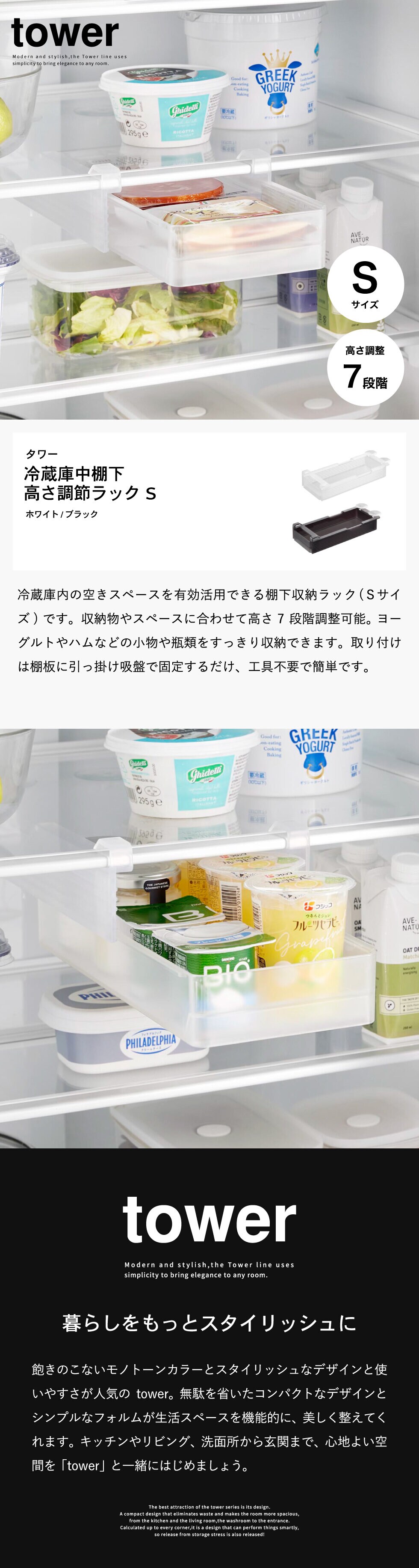 山崎実業 tower 冷蔵庫中棚下高さ調節ラック タワー S 公式 10106 10107 / 冷蔵庫内 収納ケース 収納ボックス 整理トレー 整理ケース 冷蔵庫収納 タワーシリーズ yamazaki / ブラック