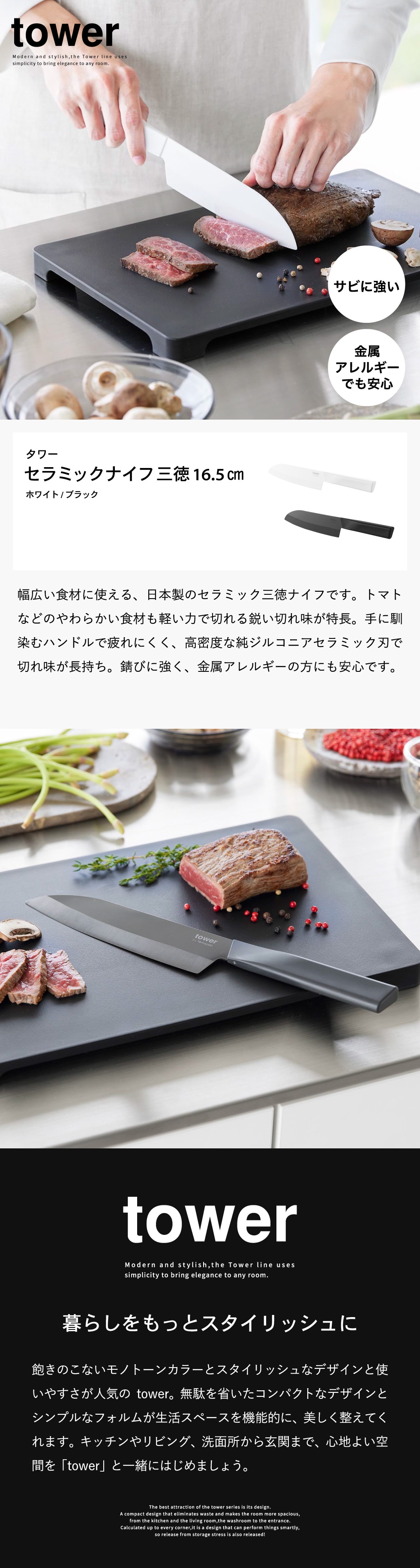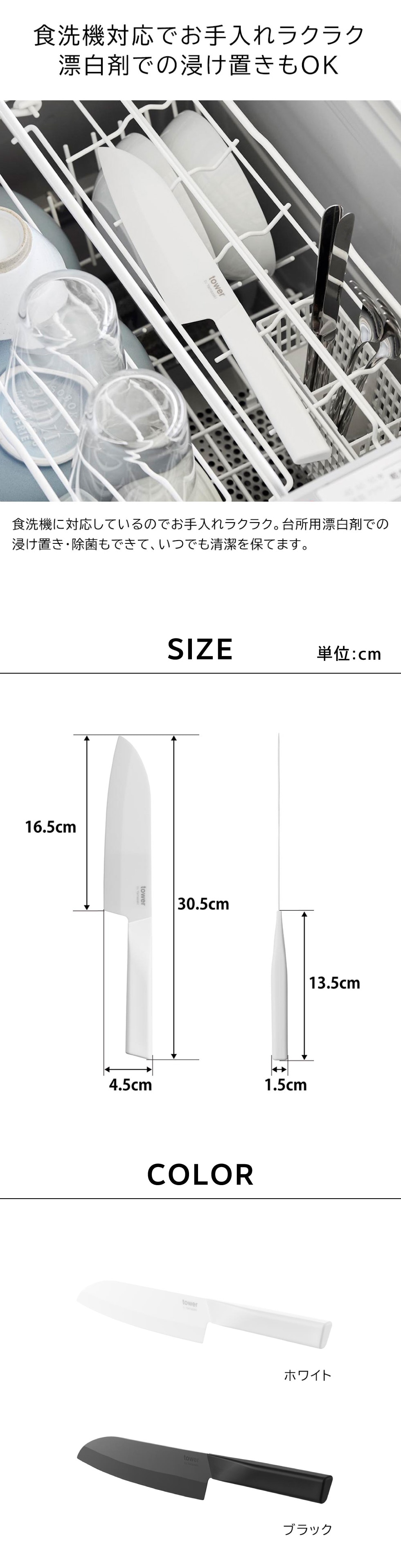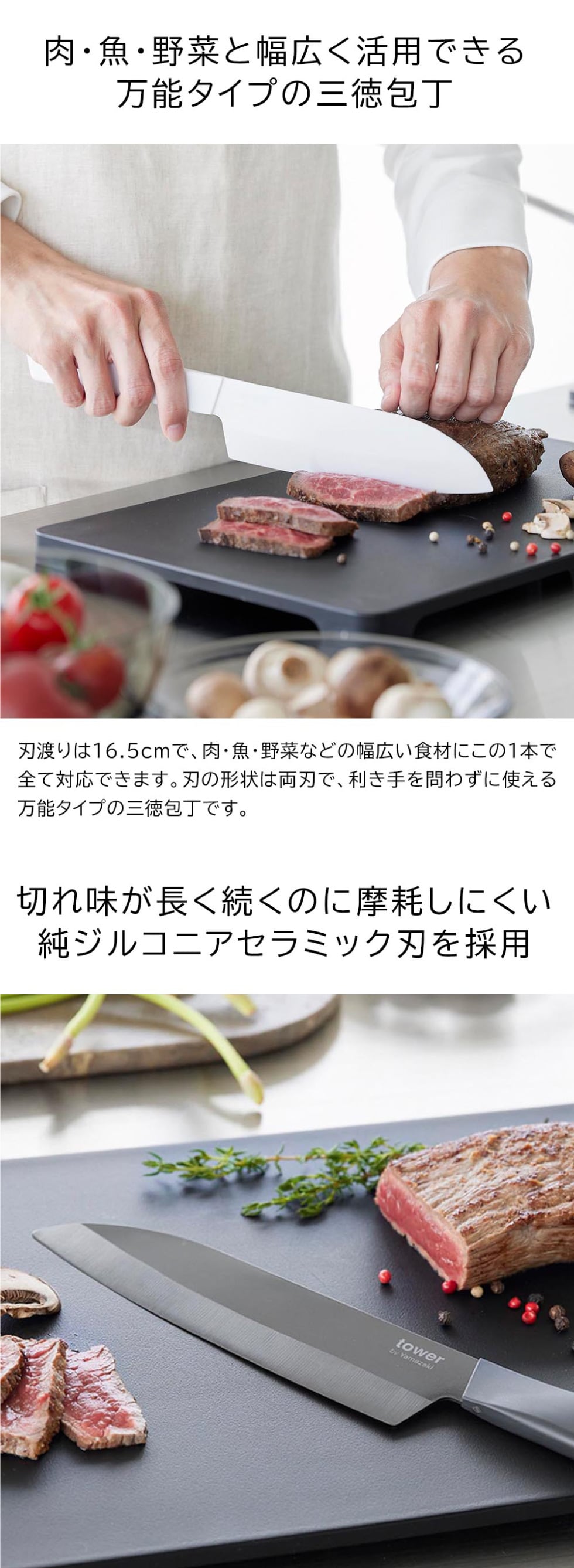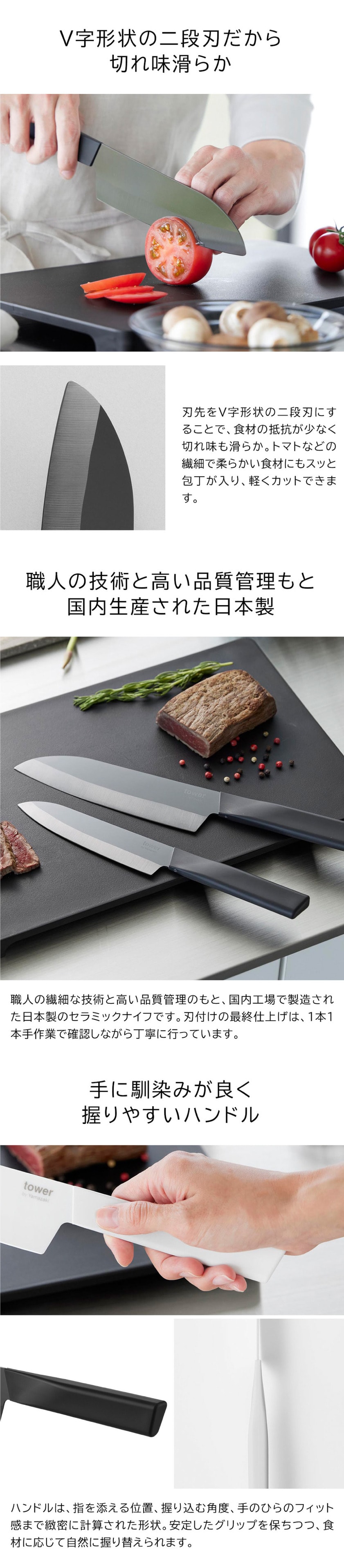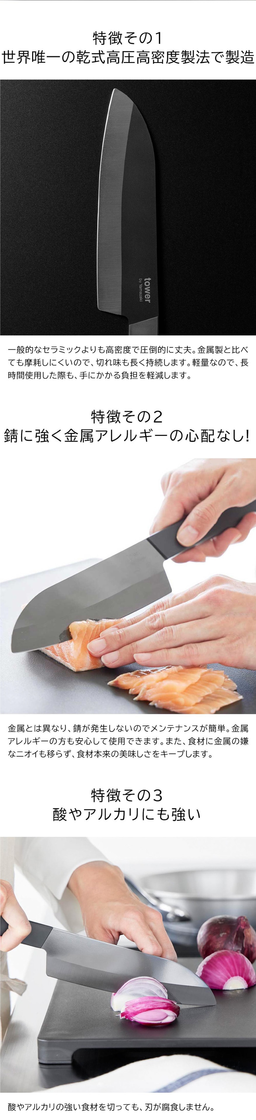 山崎実業 tower セラミックナイフ タワー 三徳 16.5cm 公式 10121 10122 ホワイト ブラック 送料無料 / 両刃 包丁 三徳包丁 キッチンナイフ 万能ナイフ 万能包丁 食洗機対応 調理器具 キッチンツール JGS / ホワイト