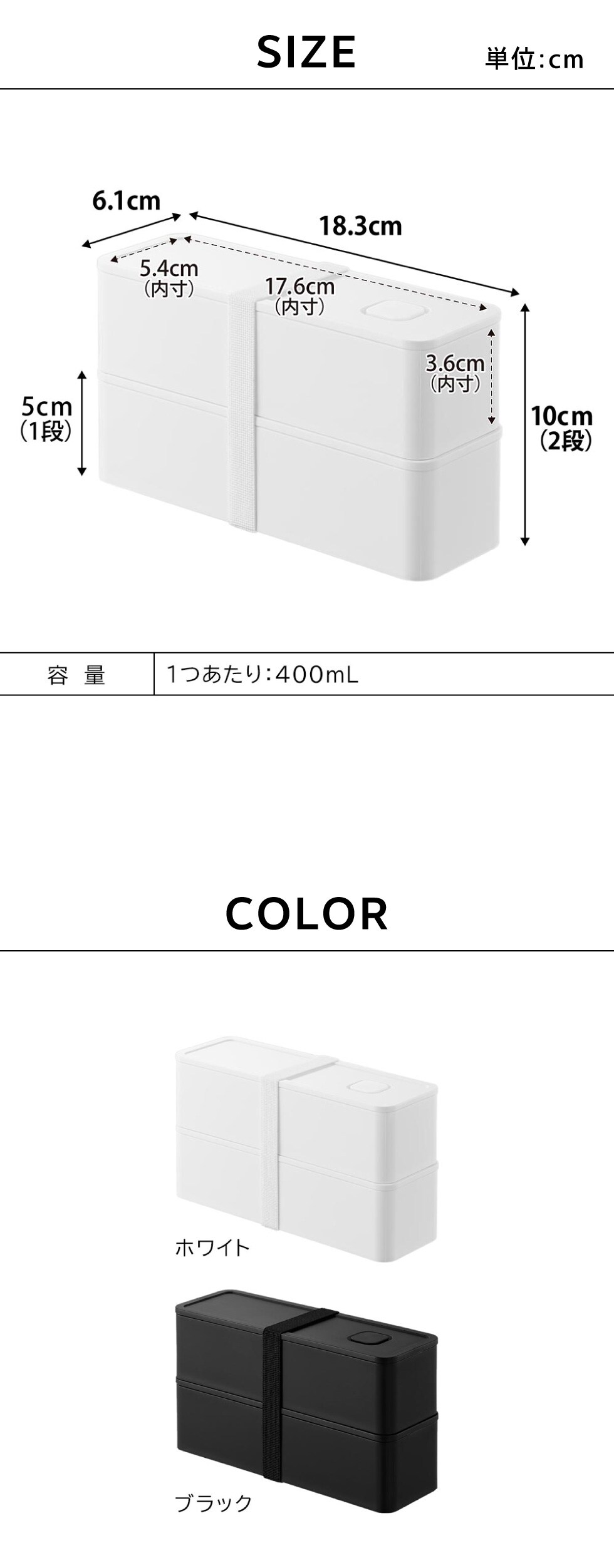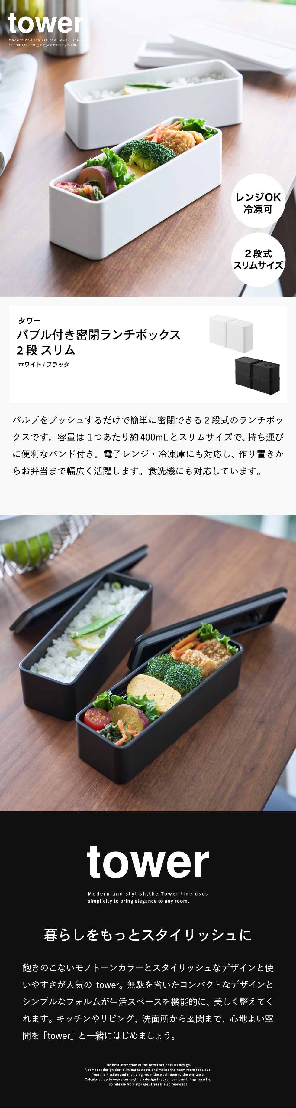 山崎実業 tower バルブ付き密閉ランチボックス タワー 2段 スリム 公式 10272 10273 / お弁当箱 容量400mL(1つあたり) 電子レンジ対応 食洗機 冷凍庫 密閉 タワーシリーズ yamazaki / ホワイト