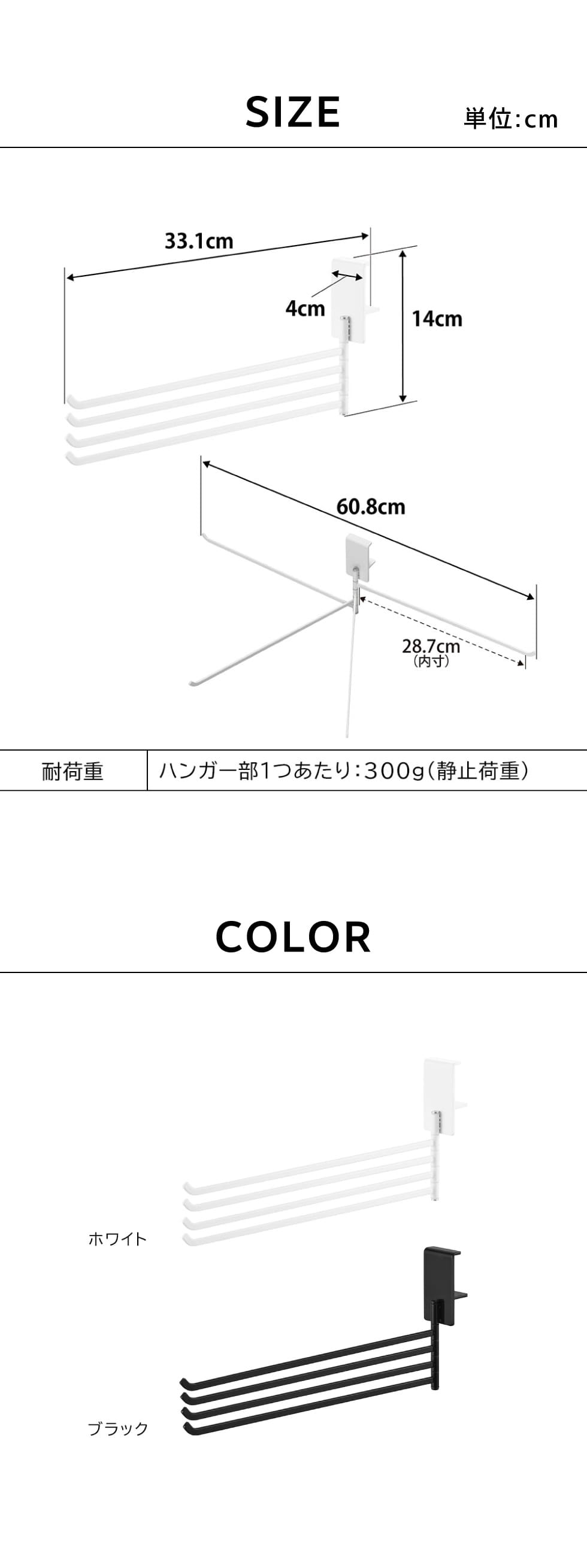 耐荷重 ハンガー部1つあたり:300g(静止荷重) |