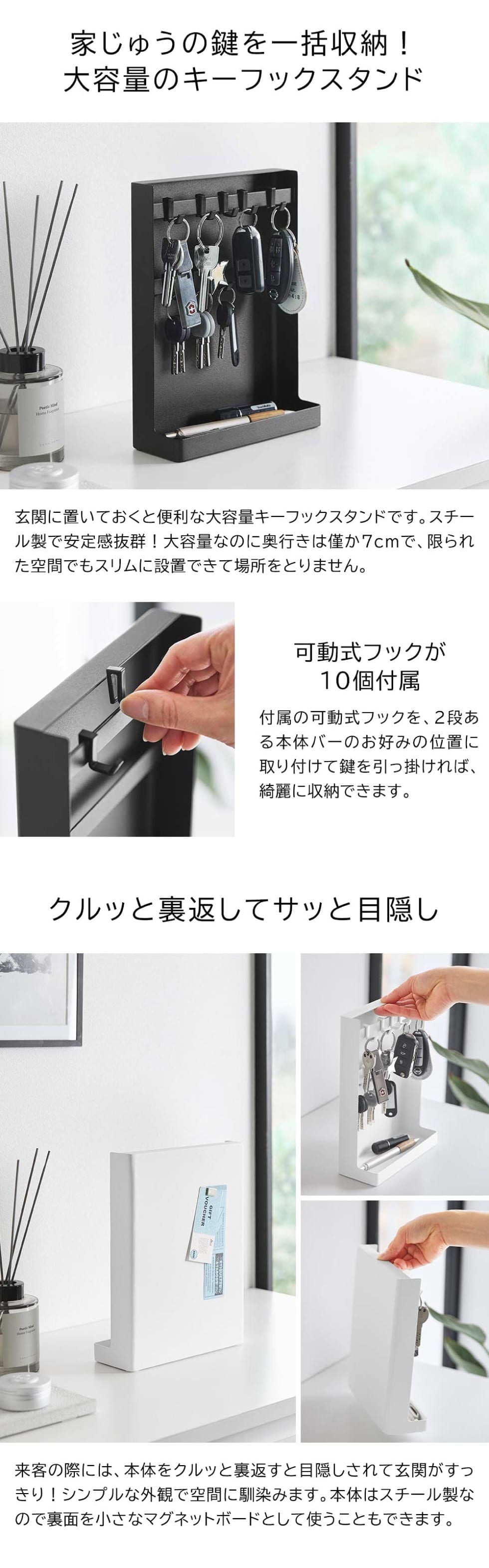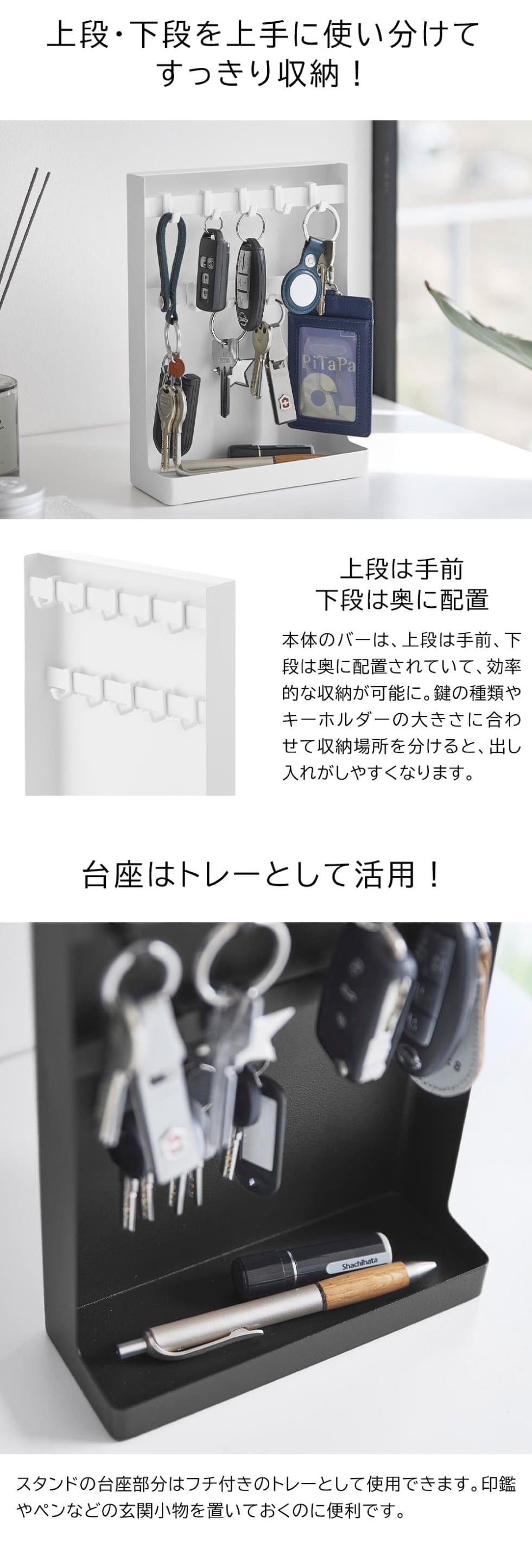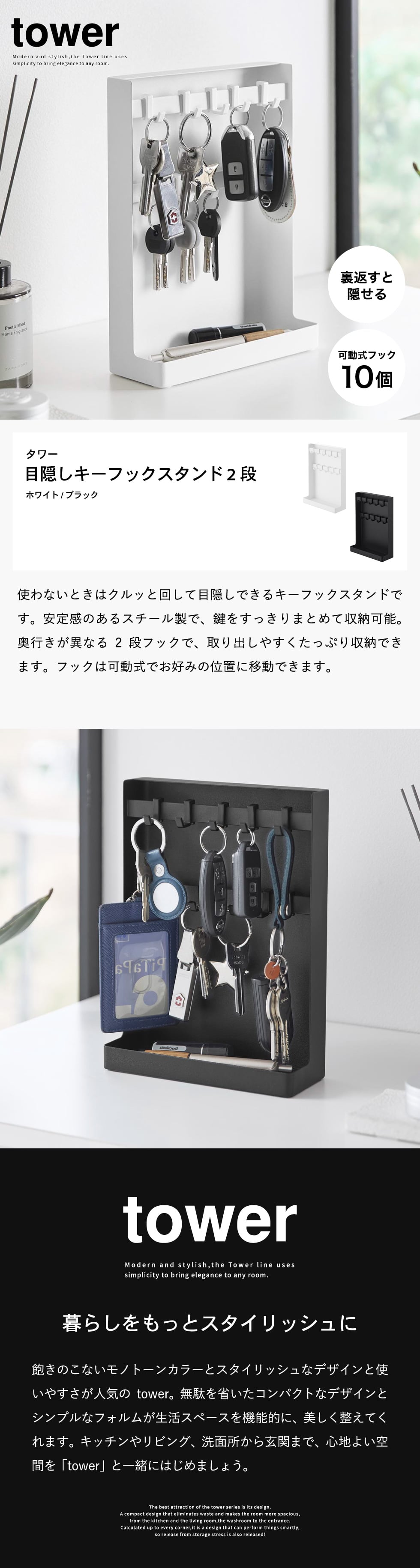 山崎実業 tower 目隠しキーフックスタンド タワー 2段 公式 10340 10341 送料無料 / 鍵 カギ 収納 鍵掛け キーボックス 整理 玄関収納 印鑑 判子 ハンコ yamazaki タワーシリーズ / ホワイト