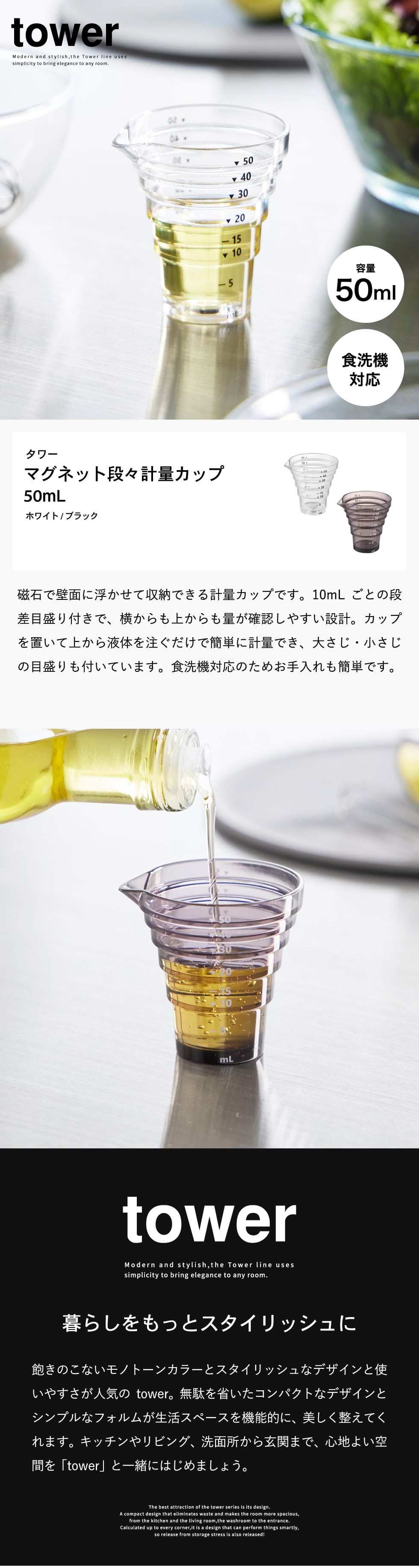 山崎実業 tower マグネット段々計量カップ タワー 50mL 公式 10360 10361 / 10ml 目盛り付き 食洗機対応 大さじ 小さじ キッチンツール 壁面収納 浮かせる収納 タワーシリーズ yamazaki / ホワイト