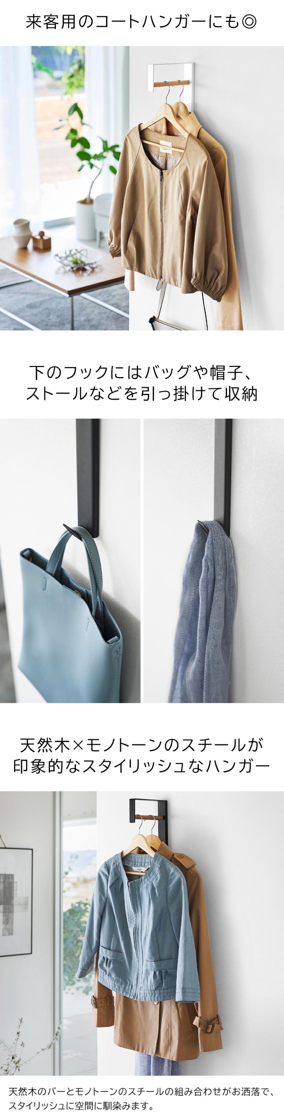 山崎実業 tower 壁付けコートハンガー タワー 公式 10407 10408 送料無料 / スリム ハンガーラック ハンガーフック ウォールハンガー コート掛け バッグ 帽子 壁掛け 壁面収納 yamazaki タワーシリーズ / ホワイト