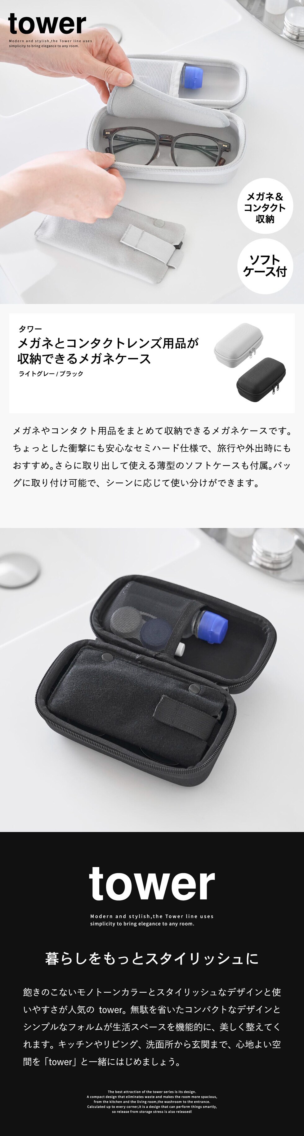 山崎実業 tower メガネとコンタクトレンズ用品が収納できるメガネケース タワー 公式 10438 10439 ライトグレー ブラック / セミハードケース ソフトケース 眼鏡ケース 収納ケース 旅行 携帯用 yamazaki / ブラック