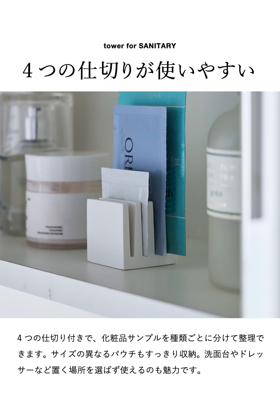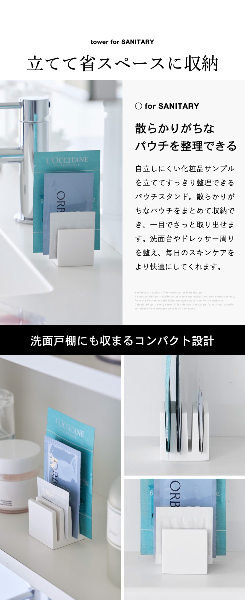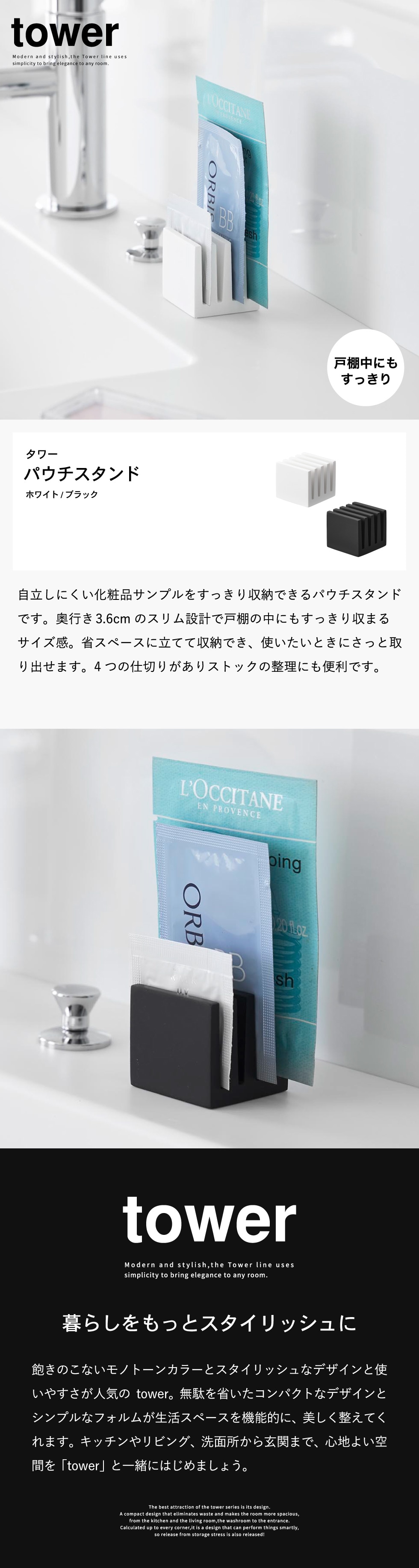 山崎実業 tower パウチスタンド タワー 公式 10571 10572 ホワイト ブラック / 化粧品サンプル サンプルパウチ 洗面戸棚 引き出し 小物整理 化粧品収納 洗面台 洗面所 タワーシリーズ yamazaki JGS / ホワイト