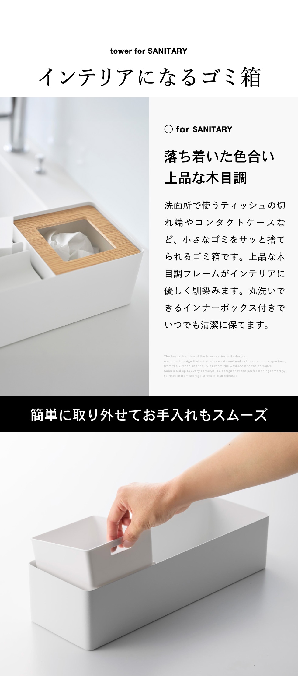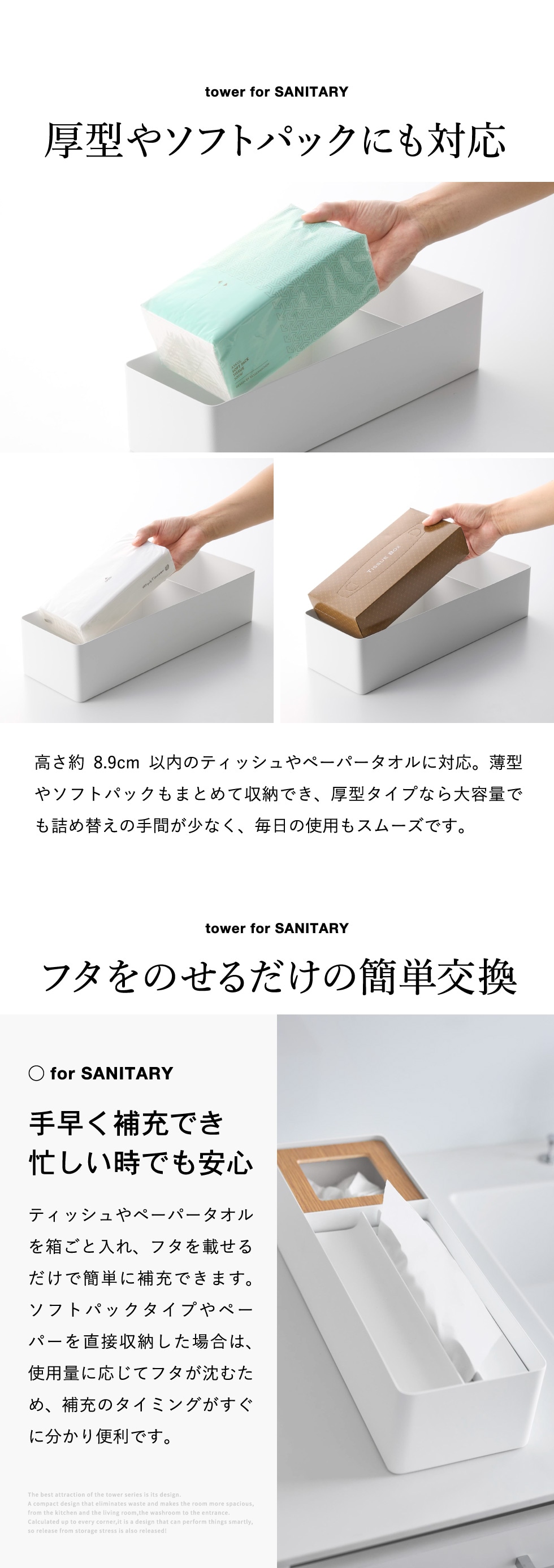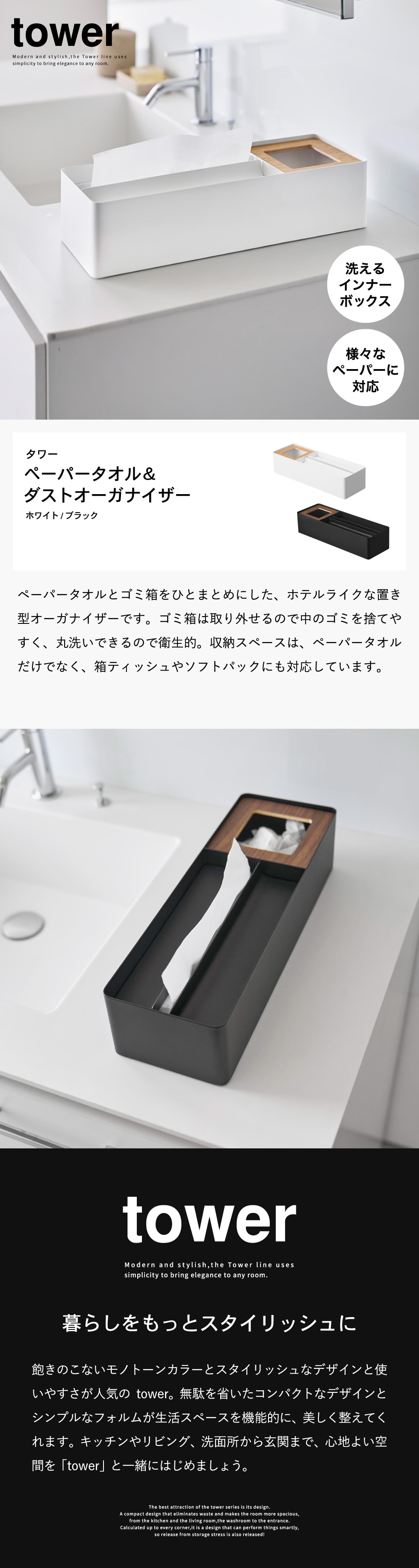 山崎実業 tower ペーパータオル&ダストオーガナイザー タワー 公式 10745 10746 ホワイト ブラック 送料無料 / 箱ティッシュ ティッシュボックス ソフトパック ゴミ箱 ごみ箱 洗面所 洗面台 リビング 寝室 JGS / ホワイト