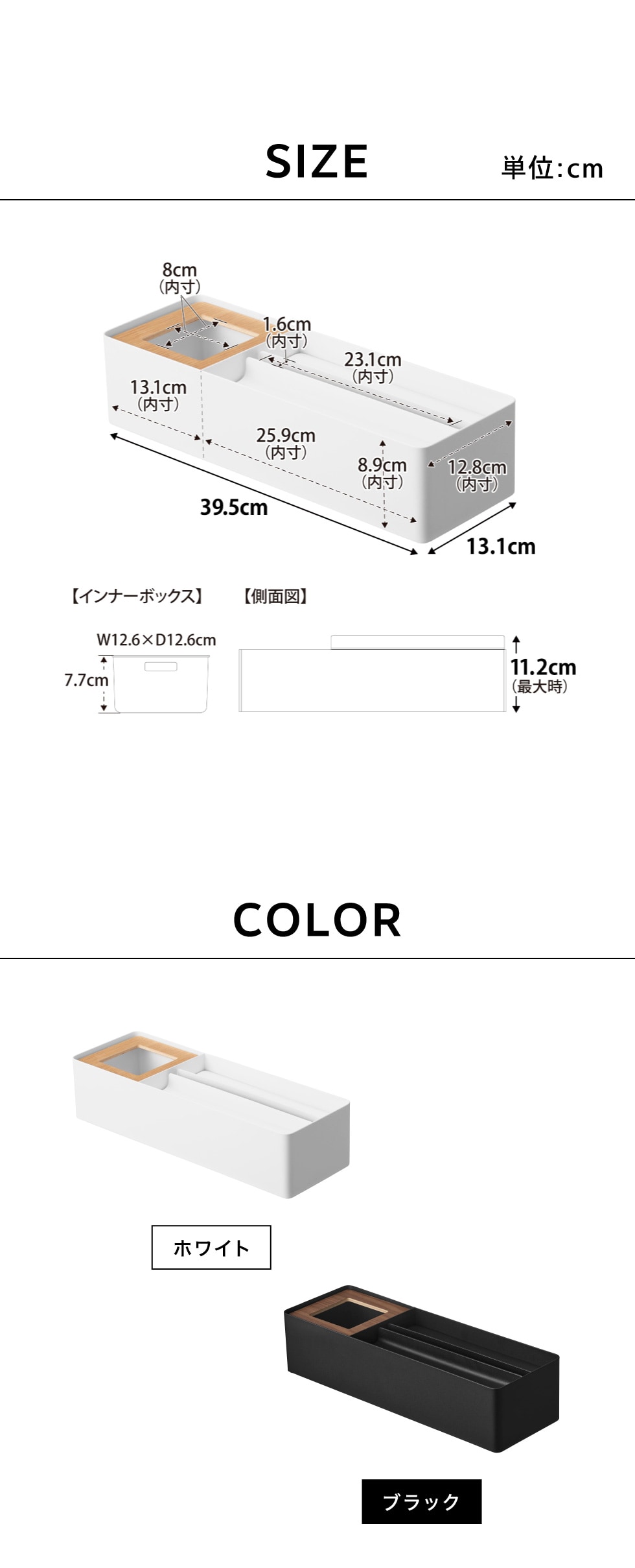 ●商品サイズ:約 本体:W39.5×D13.1×H11.2cm、インナーボックス:W12.6×D12.6×H7.7cm