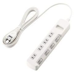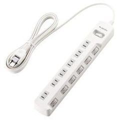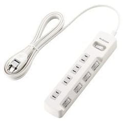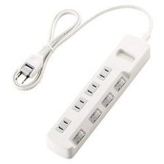 エレコム(ELECOM) T-E6A-2620WH ホワイト 省エネタップ ほこり防止シャッター付 延長コード 2ピン 6個口 2m