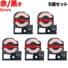 キングジム用 テプラ PRO 互換 テープカートリッジ SS6RW 白ラベル 強粘着 5個セット 6mm/白テープ/赤文字