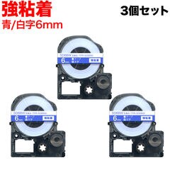 キングジム用 テプラ PRO 互換 テープカートリッジ SS6BW 白ラベル 強粘着 3個セット 6mm/白テープ/青文字