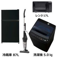 新生活家電セット3点 ブラック 黒 冷蔵庫 / 洗濯機 / 電子レンジ[一人暮らし家電ベーシック3点セット] (標準設置無料)