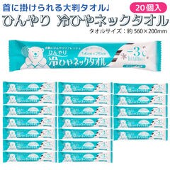 首掛けできる -3℃ ひんやり 冷ひやネックタオル 日本製 個包装 1枚入×20個セット メントール配合 無香料 冷感タオル