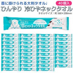首掛けできる -3℃ ひんやり 冷ひやネックタオル 日本製 個包装 1枚入×40個セット メントール配合 無香料 冷感タオル