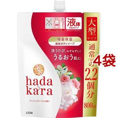 ハダカラ ボディソープ 液体 フレッシュフローラルの香り 詰め替え大型 (800ml*4袋セット)