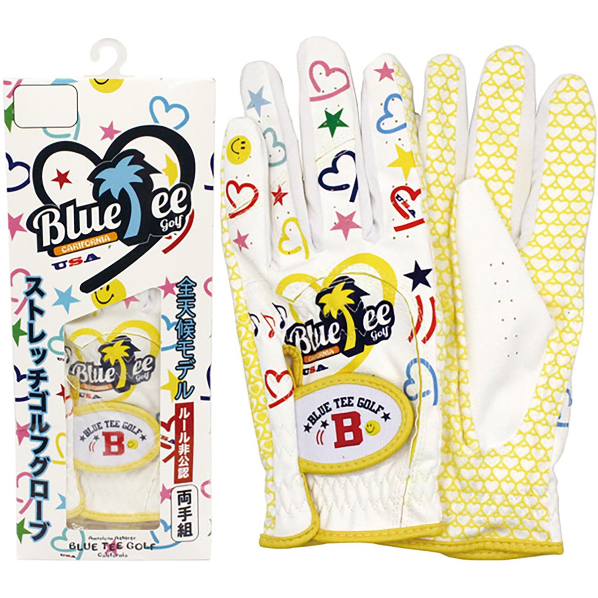 ブルーティーゴルフ BLUE TEE GOLF ハート ストレッチゴルフグローブ 両手用 22cm 両手用 イエロー レディス