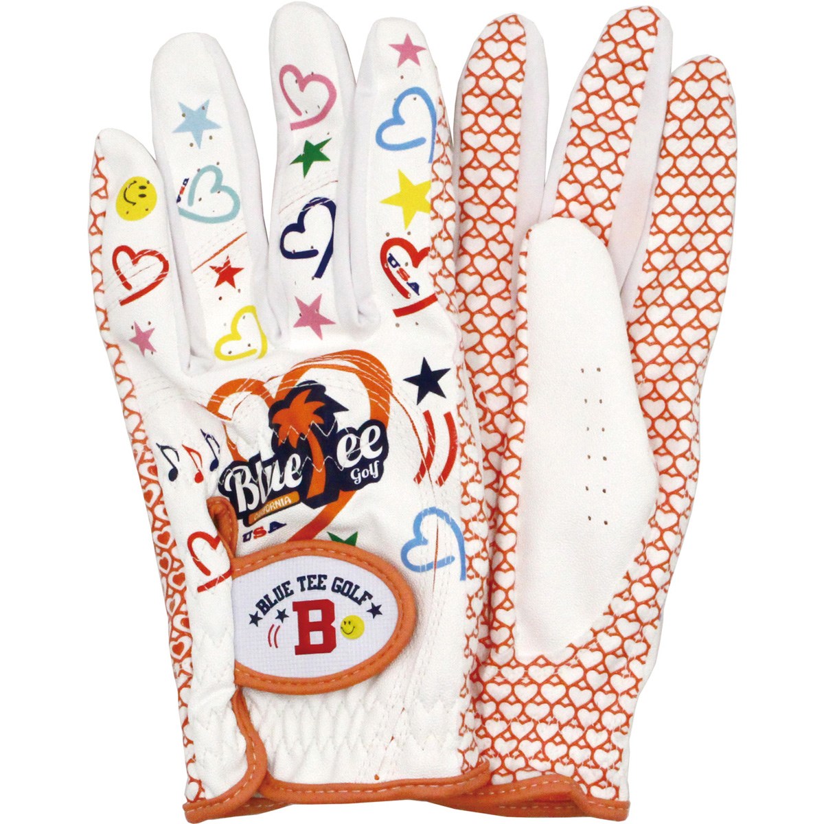ブルーティーゴルフ BLUE TEE GOLF ハート ストレッチゴルフグローブ 両手用 21cm 両手用 オレンジ レディス
