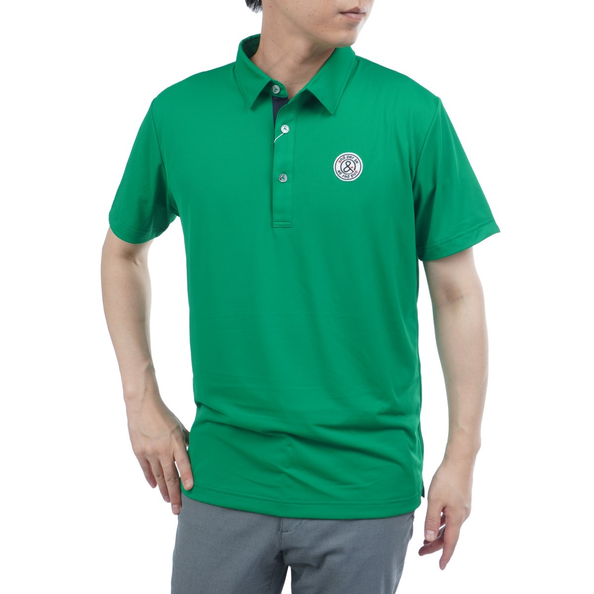 アンパスィ and per se & GOLF ストレッチ レイシャットピケ半袖モックネックシャツ M ホワイト