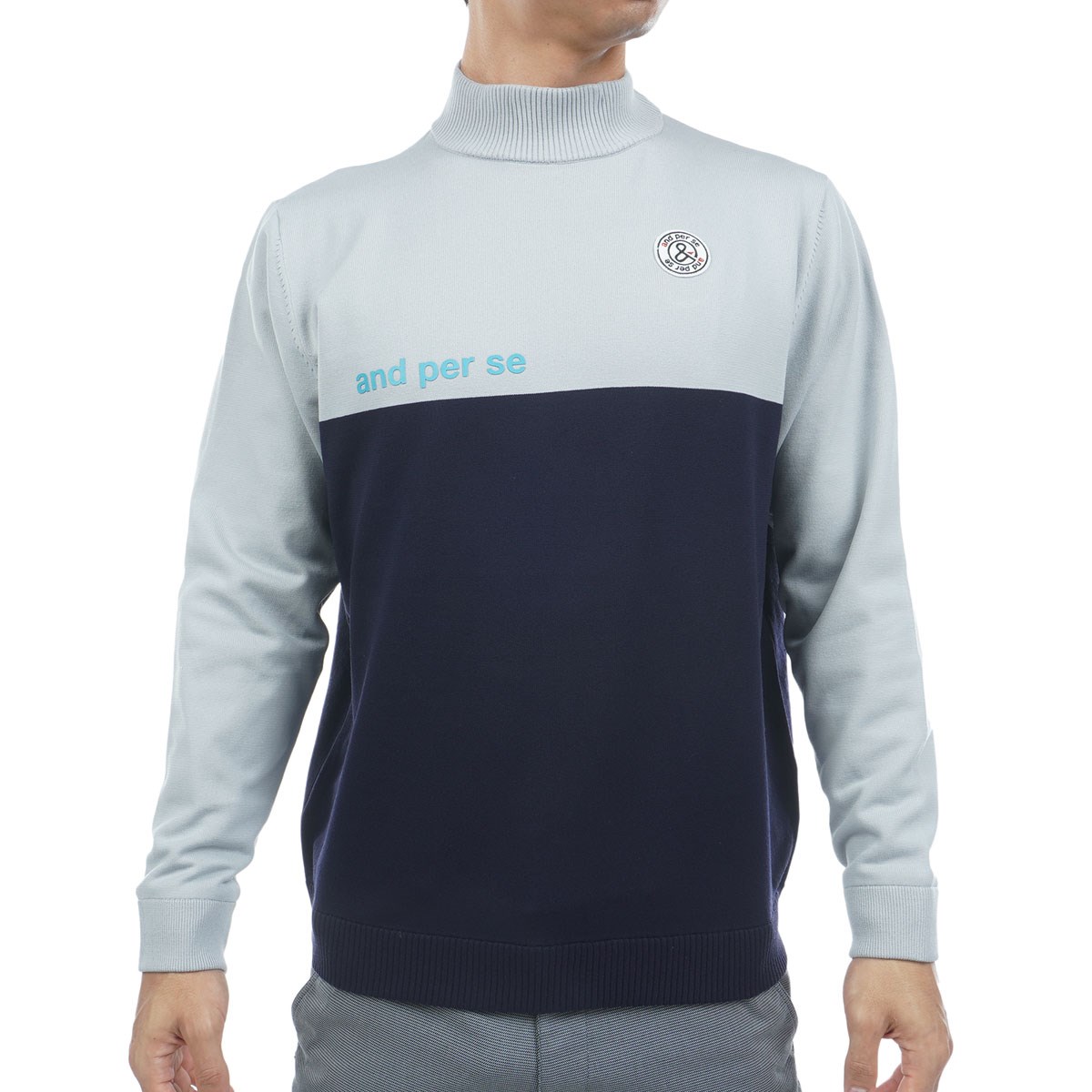 アンパスィ and per se ストレッチ ウインドシャッター袖防風ハイネックセーター LL ネイビー