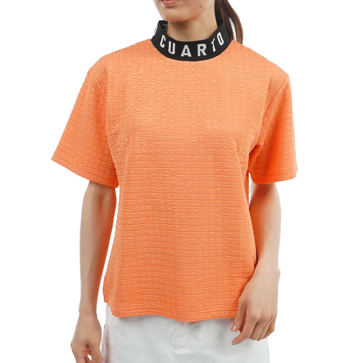 クアルトユナイテッド CUARTO UNITED ストレッチ ハートロゴモックネック 半袖シャツ L ピンク レディス