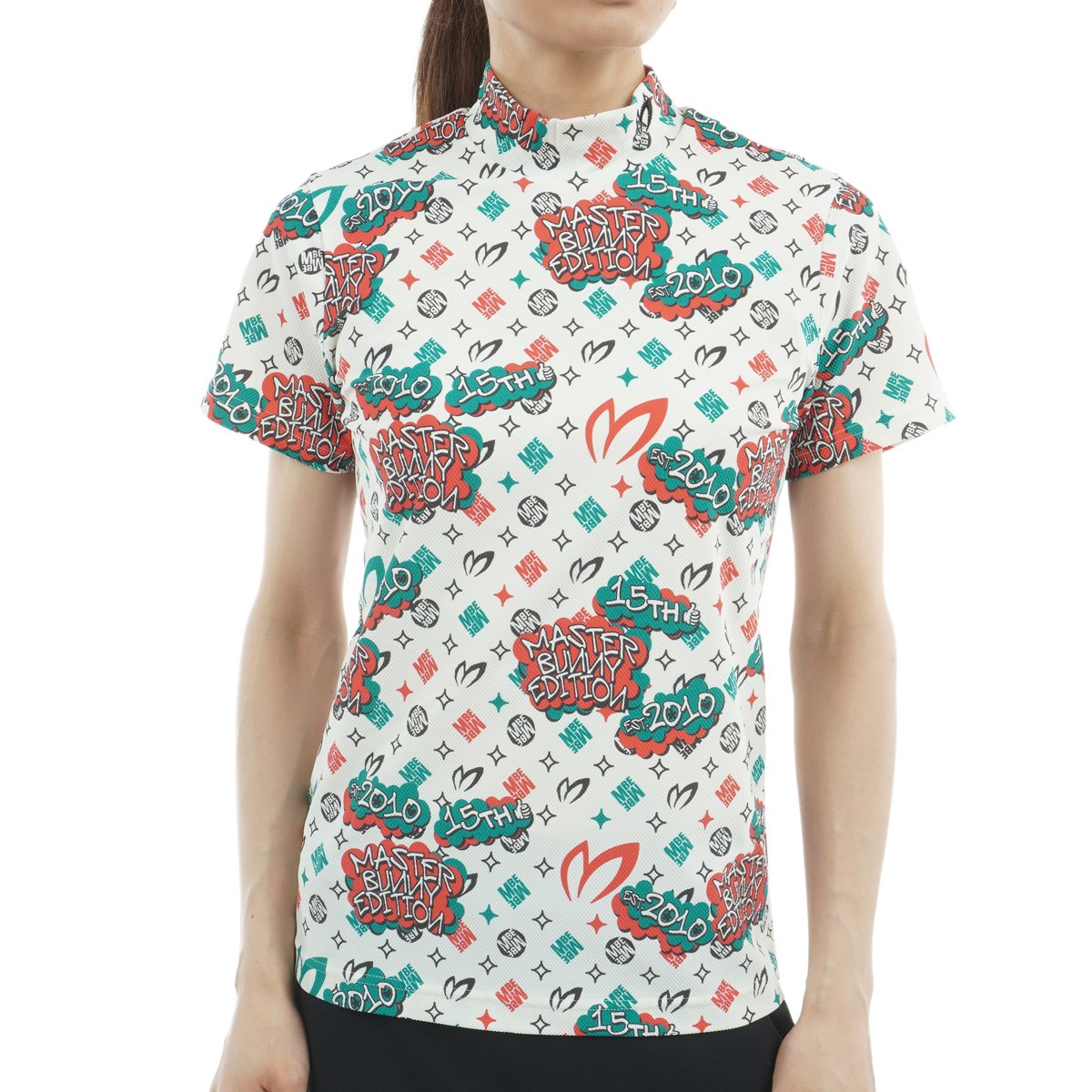 セシルマクビー グリーン CECIL McBEE green ハートモチーフ モックネック半袖シャツ 1 ホワイト レディス