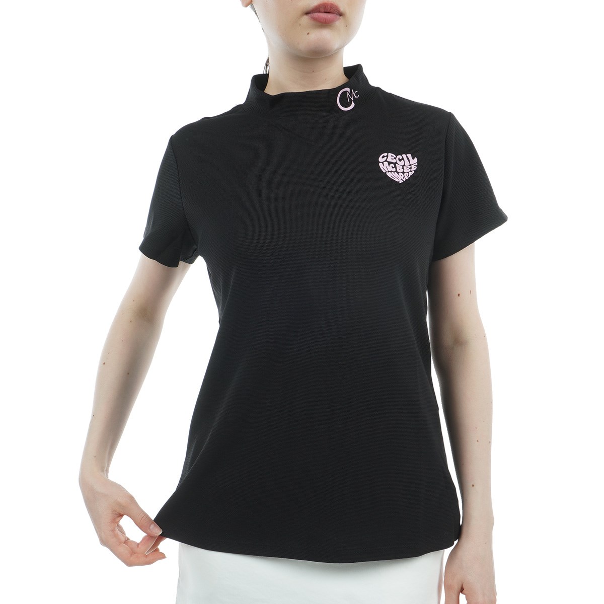 セシルマクビー グリーン CECIL McBEE green ハートモチーフ モックネック半袖シャツ 1 ブラック レディス