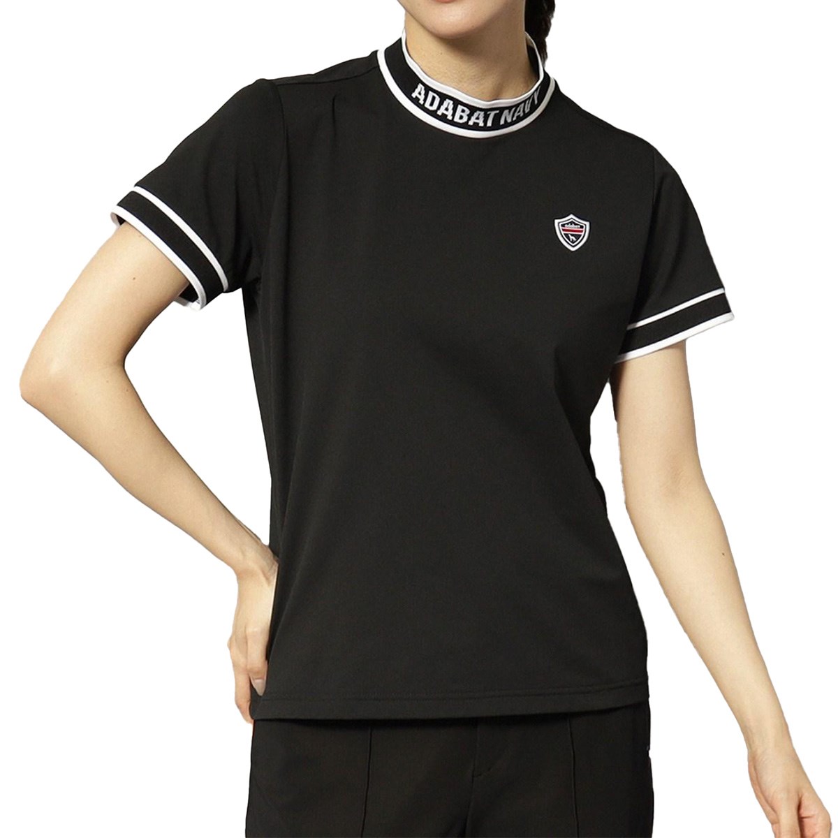 アディダス Adidas UVケア付き ジャカード ストレッチ モックネック 長袖シャツ J/XS ブラック レディス