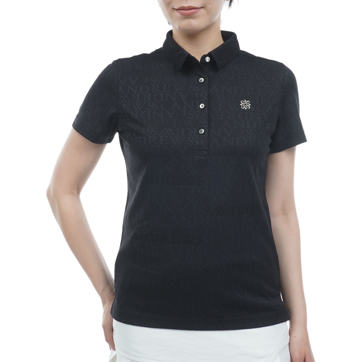 セント・アンドリュース St ANDREWS ダブルロゴジャカード半袖ポロシャツ S ブラック 010 レディス