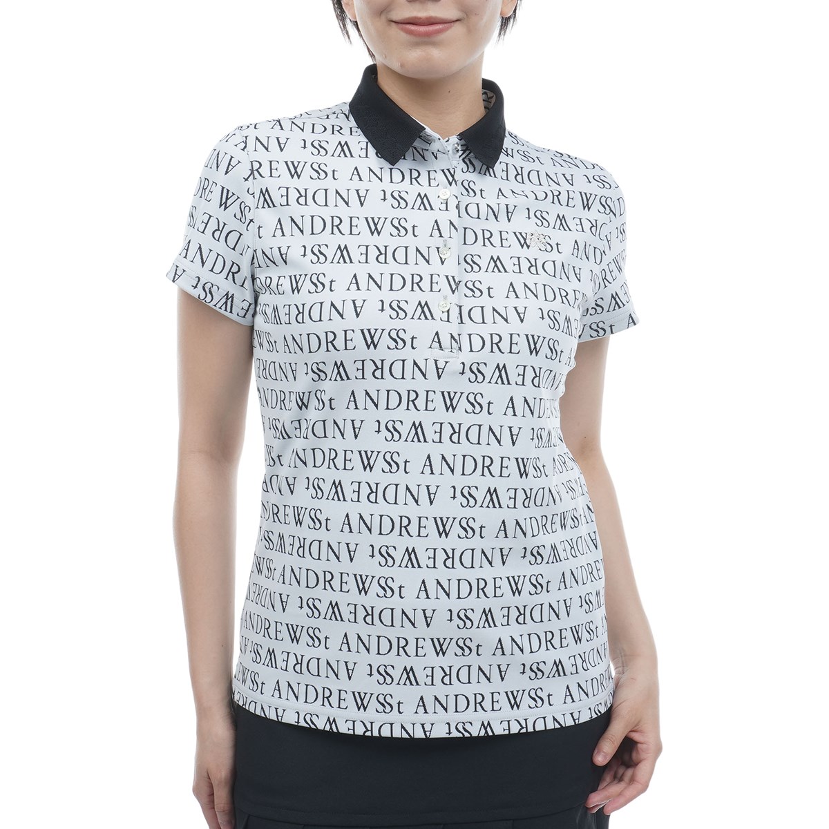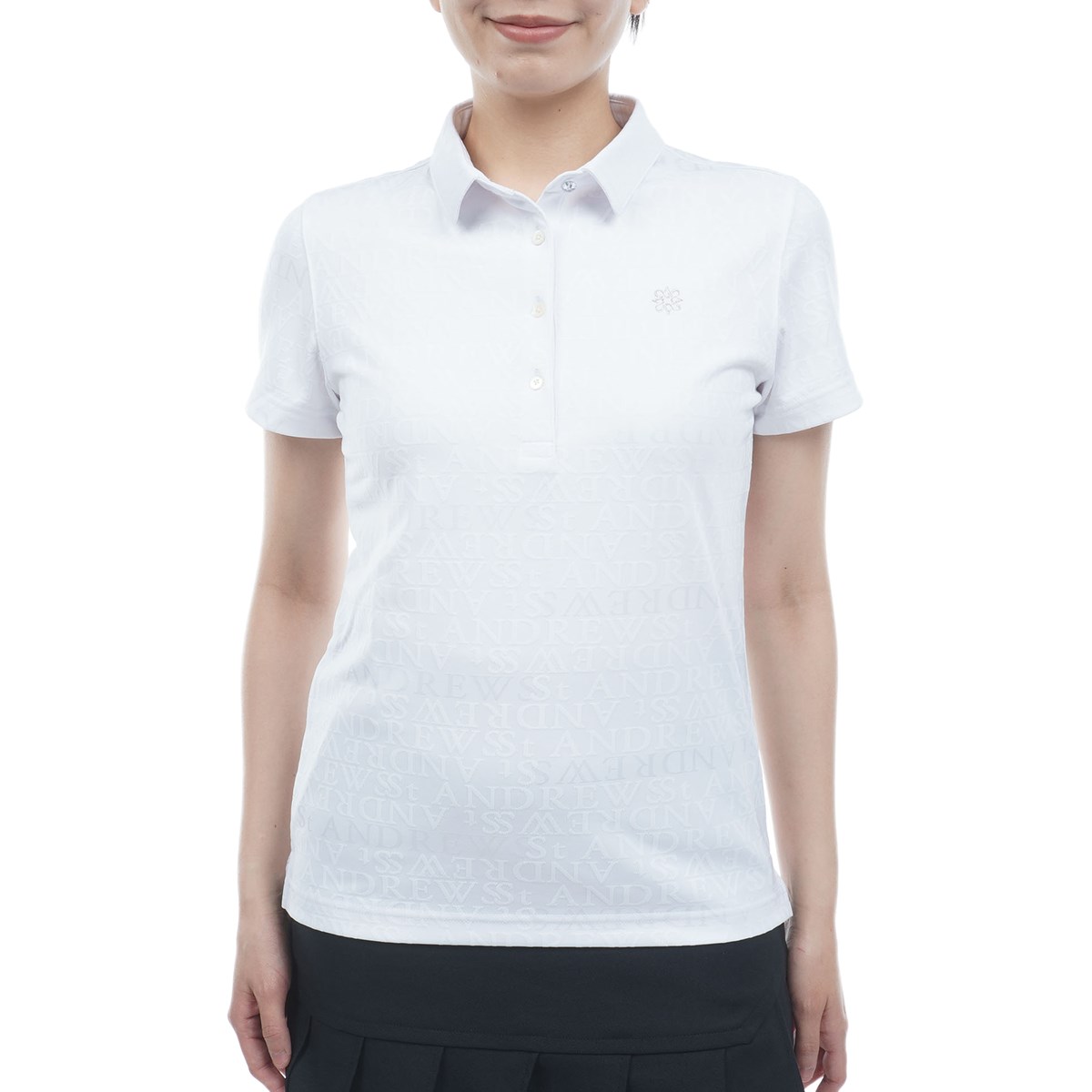 セント・アンドリュース St ANDREWS ダブルロゴジャカード半袖ポロシャツ S ホワイト 030 レディス