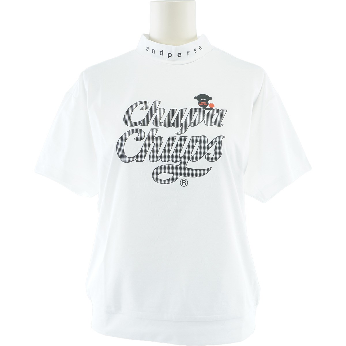 アンパスィ and per se ストレッチ チュッパチャプス モックネック半袖シャツ LL ホワイト レディス