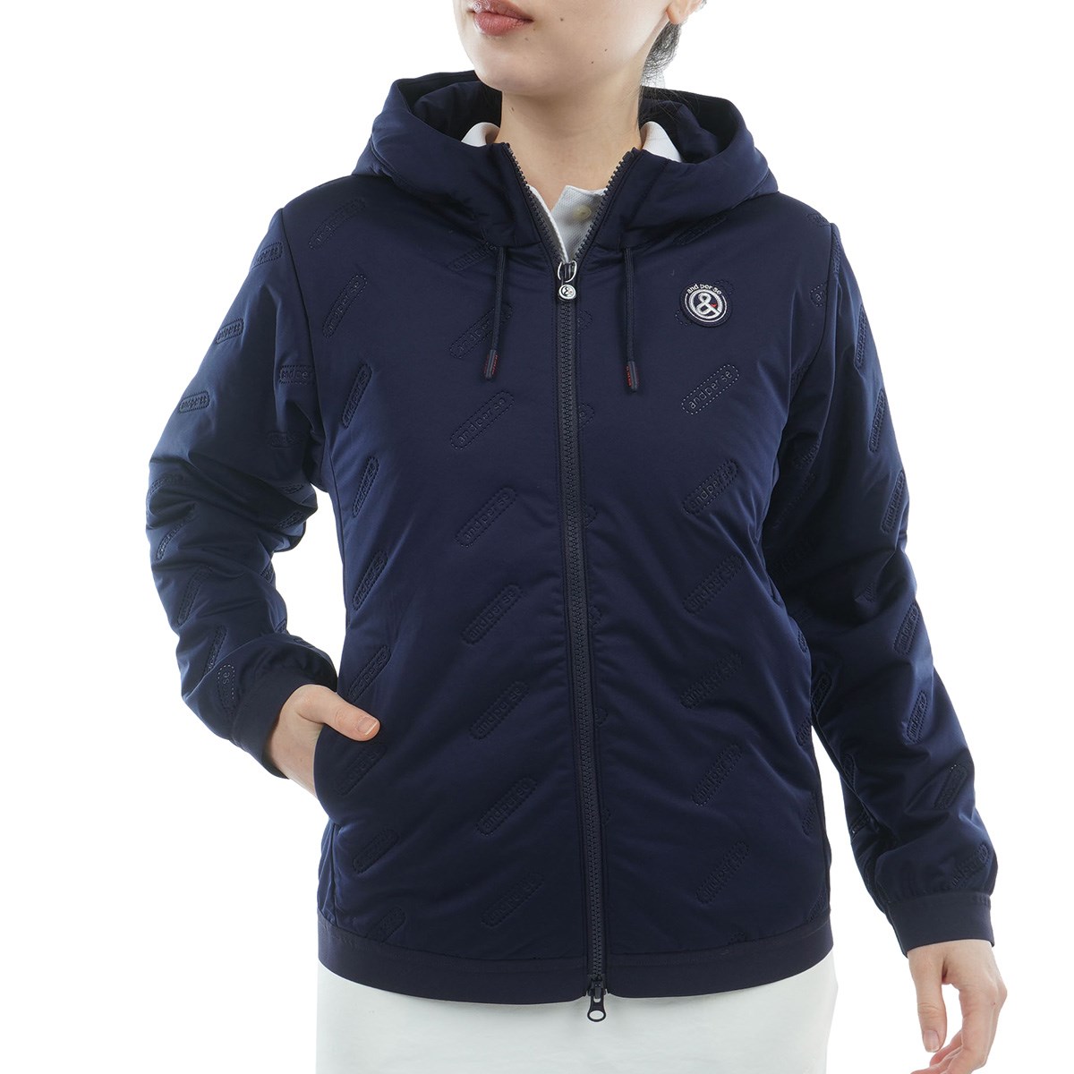 アンパスィ and per se ストレッチ エアジャスター中綿フーディーブルゾン LL ネイビー レディス
