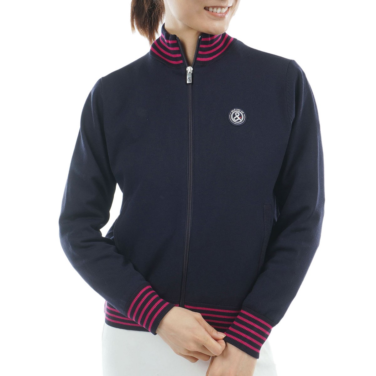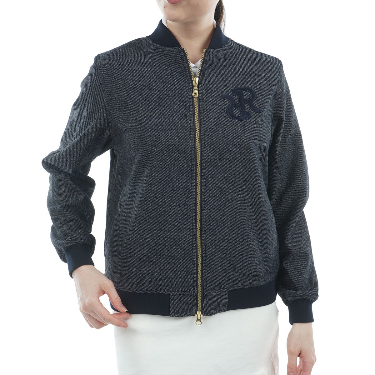 アンパスィ and per se ストレッチ ウインドシャッター防風ニットブルゾン LL ネイビー レディス