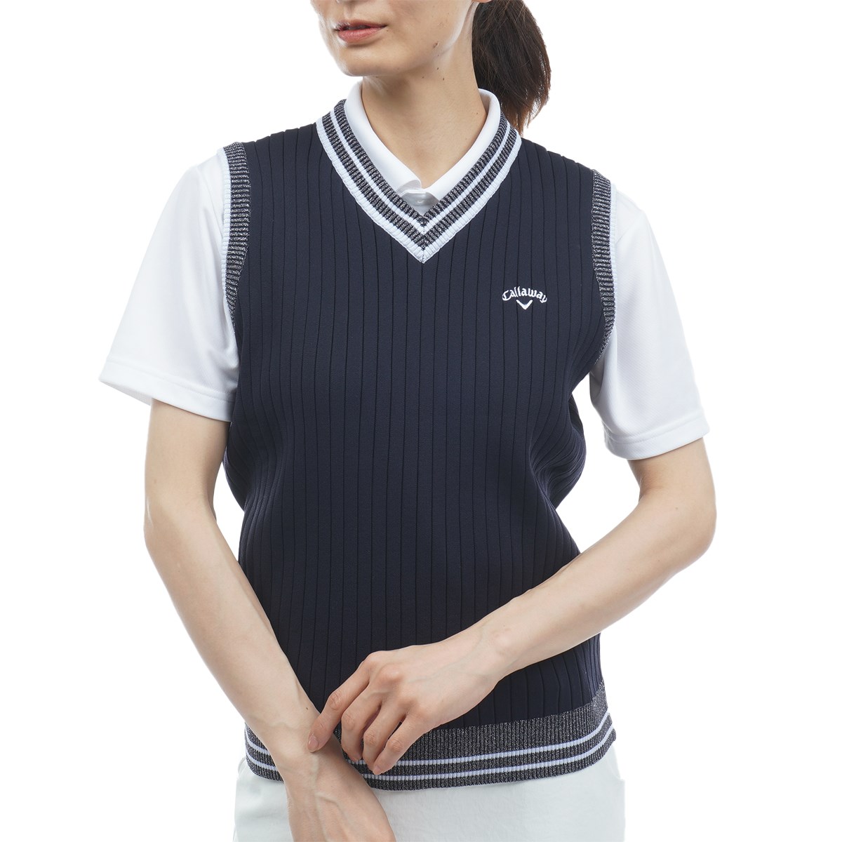 キャロウェイゴルフ Callaway Golf リブ編みVネックニットベスト LL ネイビー 1120 レディス