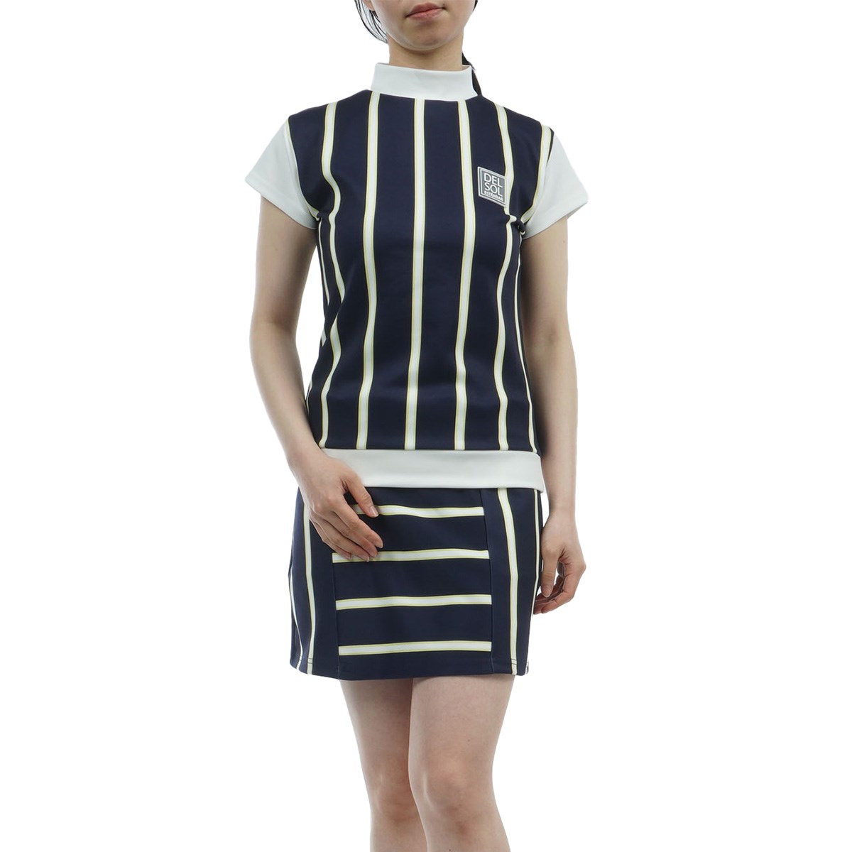 デルソルゴルフ DELSOL GOLF ストレッチ ポンチ ストライプ柄セットアップ LL ネイビー レディス
