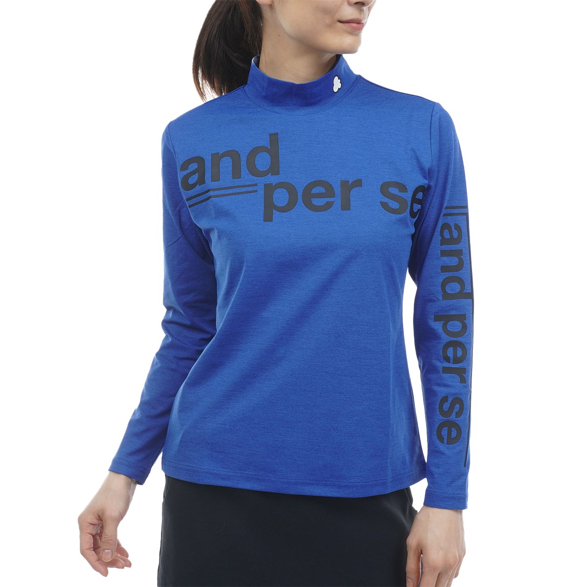 アンパスィ and per se ストレッチ リファインドライ ハイネック長袖シャツ LL ブラック レディス