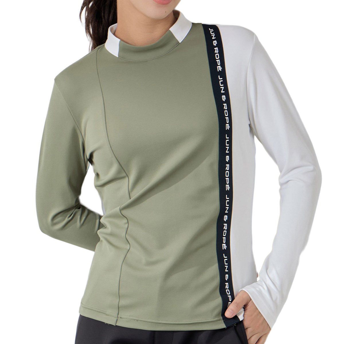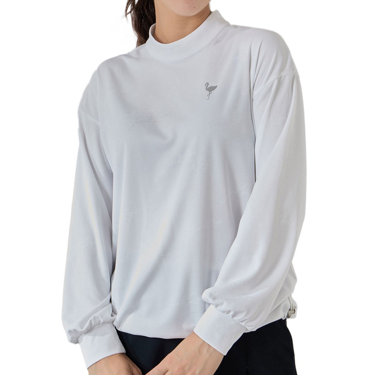 ジュン アンド ロペ JUN & ROPE ペナント柄 ジャカード長袖ポロシャツ L ホワイト 10 レディス