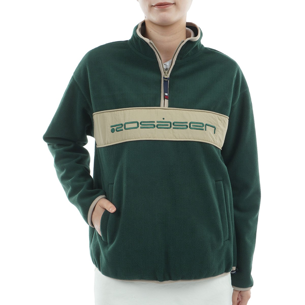 ロサーセン ROSASEN ストレッチ 両面起毛 V字配色長袖ポロシャツ M(40) ネイビー 98 レディス
