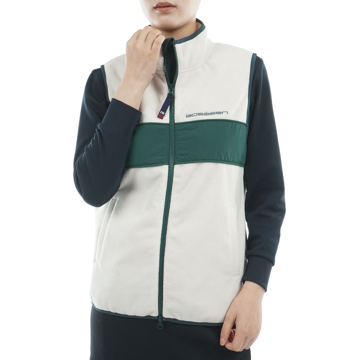 ロサーセン ROSASEN ストレッチ 両面起毛 V字配色長袖ポロシャツ M(40) ベージュ 52 レディス