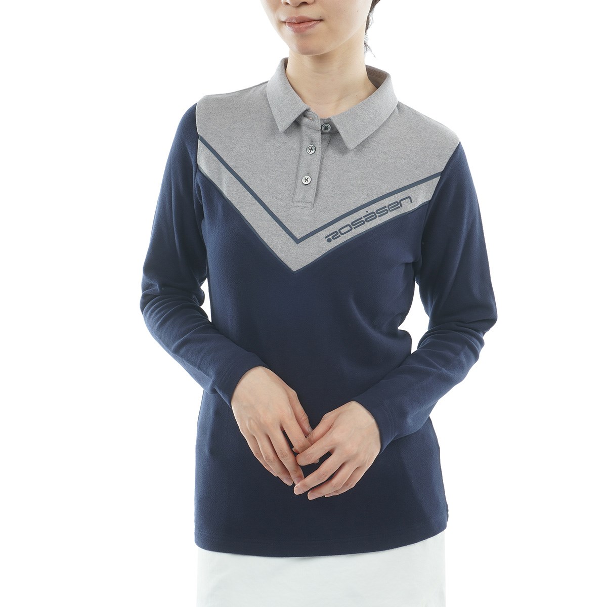 ロサーセン ROSASEN ストレッチ 両面起毛 V字配色長袖ポロシャツ L(42) ネイビー 98 レディス
