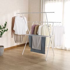 X型ステンレス室内物干しスタンド(タオル掛け付き) 小物ハンガー付 部屋干しハンガー 省スペース