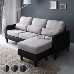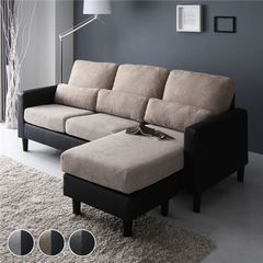 カウチ ソファー 単品 3人掛け ベージュ×ブラック コンパクト カバーリング ローソファー 【同梱不可】【代引不可】[▲][TP]