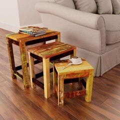 vidaXL 手彫り ベッドサイドキャビネット 40x30x50cm 無垢の再生木材家具 テーブル ベッドサイドテーブル