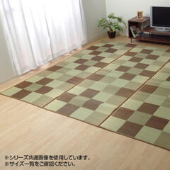 純国産 日本製 い草ラグ 抗菌防臭 『DXカラフルブロック』 約191×250cm グリーン 8246239