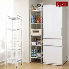 幅が伸縮できるすき間収納ラック Lサイズ キャスター付 棚板高さ調整可 隙間収納 SYM-502WH-SH