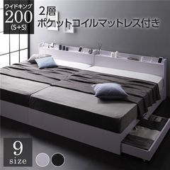 ベッド すのこ 木製 コンセント付き ホワイト セミダブル 2層ポケットコイルマットレス付き 【同梱不可】【代引不可】[▲][TP]